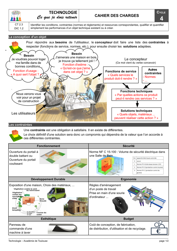 | - J'ai trouvé la fonction d'usage du système. - J'ai identifié au moins cinq contraintes. - J'ai représenté le cahier des charges sous la forme d'une carte mentale. |